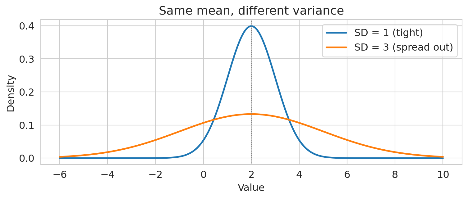 Throughout this book, $\text{Normal}(\mu, \sigma)$ denotes a normal distribution with mean $\mu$ and **standard deviation** $\sigma$ — not variance. So $\text{Normal}(100, 15)$ means mean 100 and standard deviation 15.