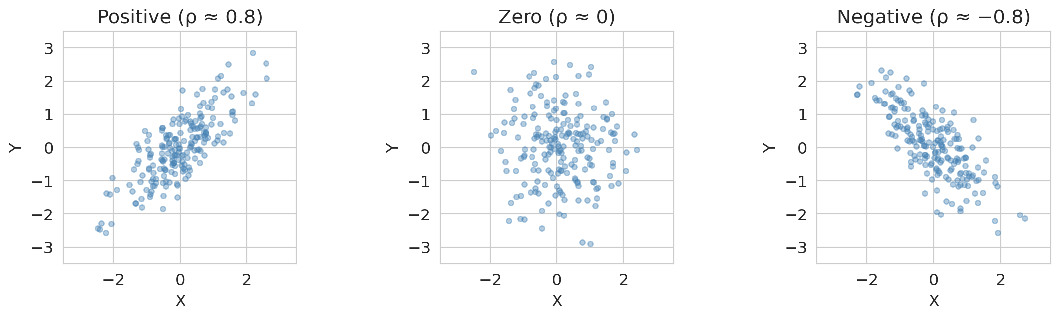 10. $X$ and $Y$ tend to move in the same direction — when $X$ is above its mean, $Y$ tends to be above its mean too