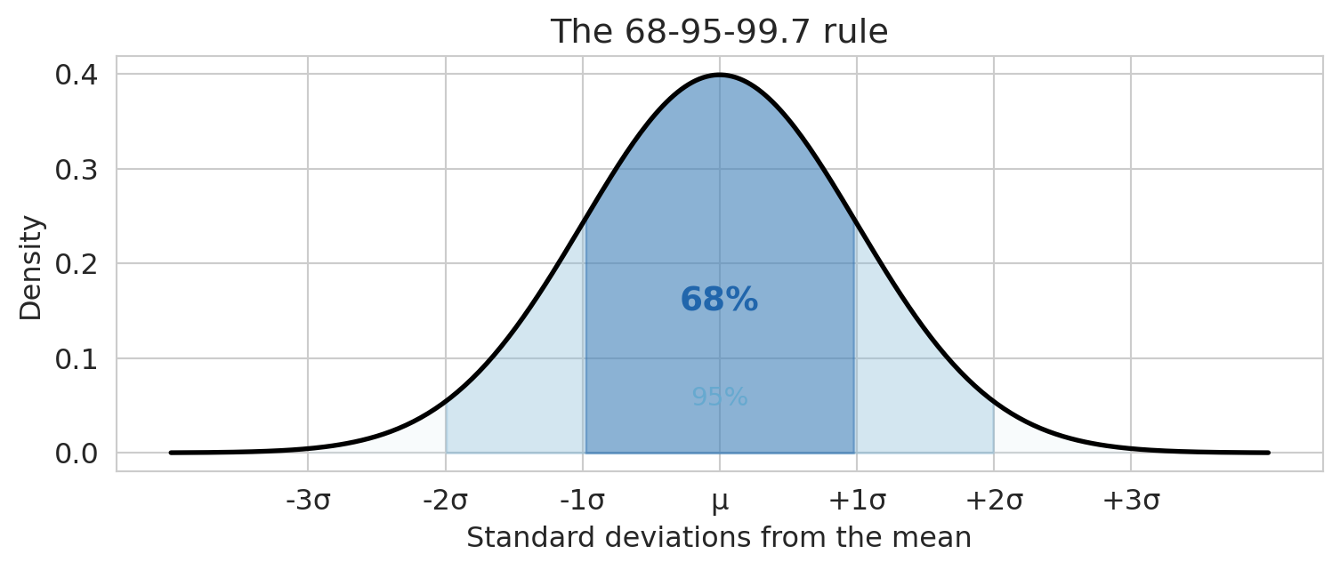 axes[1].fill_between(x, norm.pdf(x), alpha=0.2, color='steelblue')