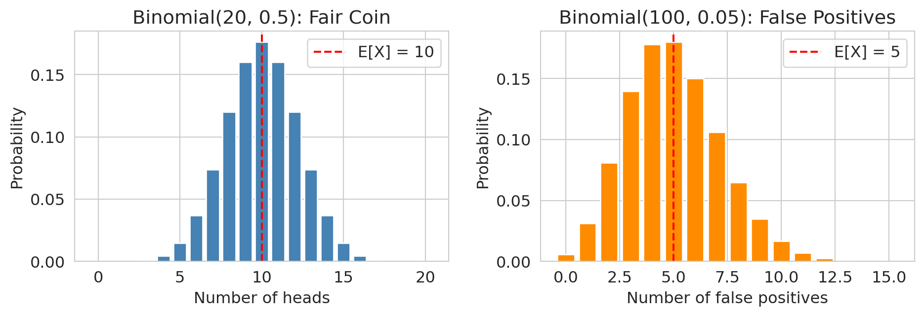| Binomial / Bernoulli | $\text{Bin}(n, p)$ | Chapters 11, 13 |