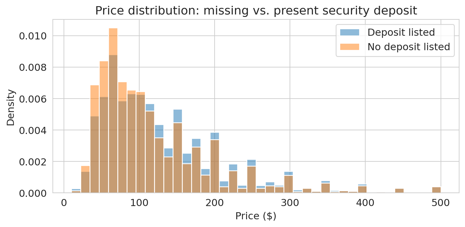 # Do listings with missing deposits have different prices?