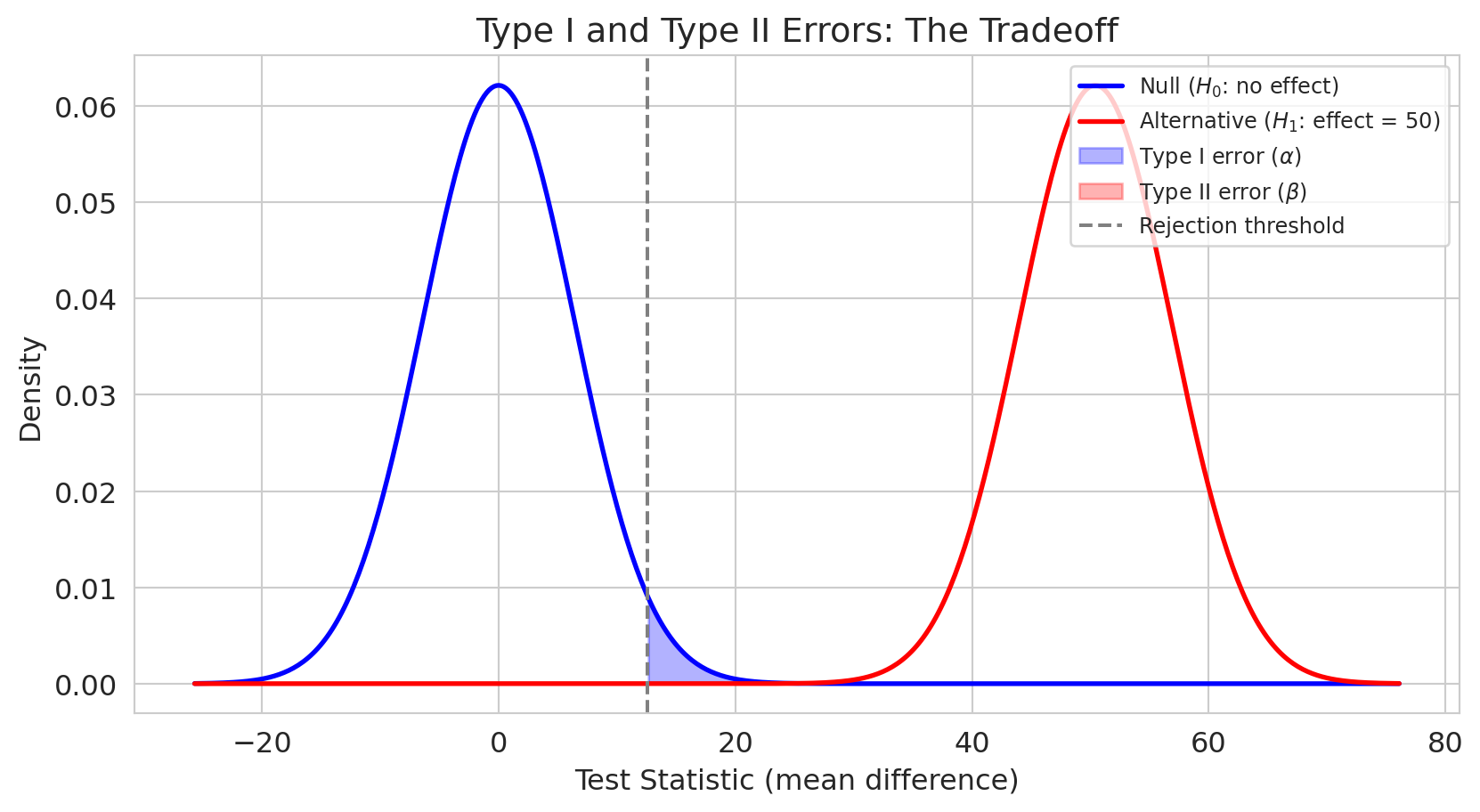 The lesson: always report effect sizes and confidence intervals alongside p-values. A small p-value tells you the effect is unlikely to be zero — it does not tell you the effect is large or important.