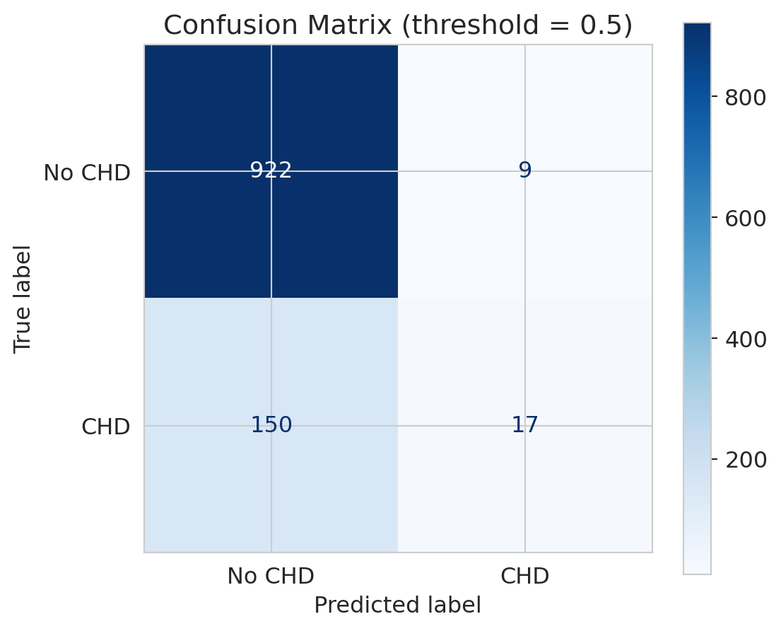 This failure is critical for a screening tool. Young patients who *do* develop CHD are exactly the cases where early intervention matters most — and the model is blind to them.