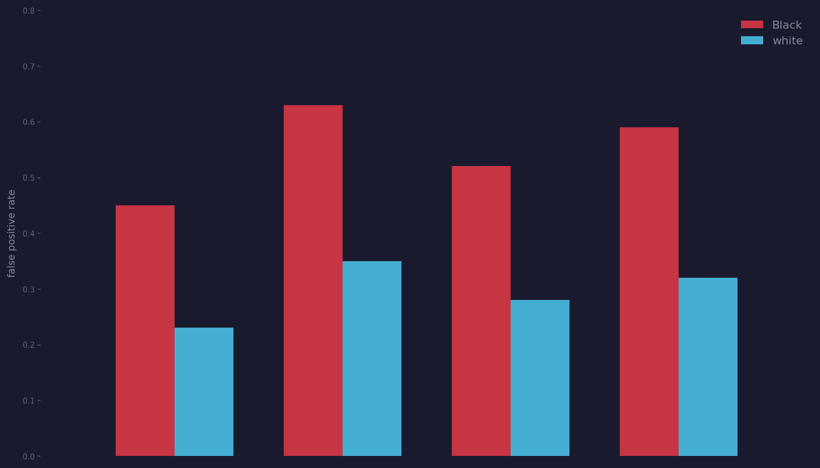 Broward County uses COMPAS scores to set bail. why is the false positive rate 45% for Black defendants vs 23% for white?